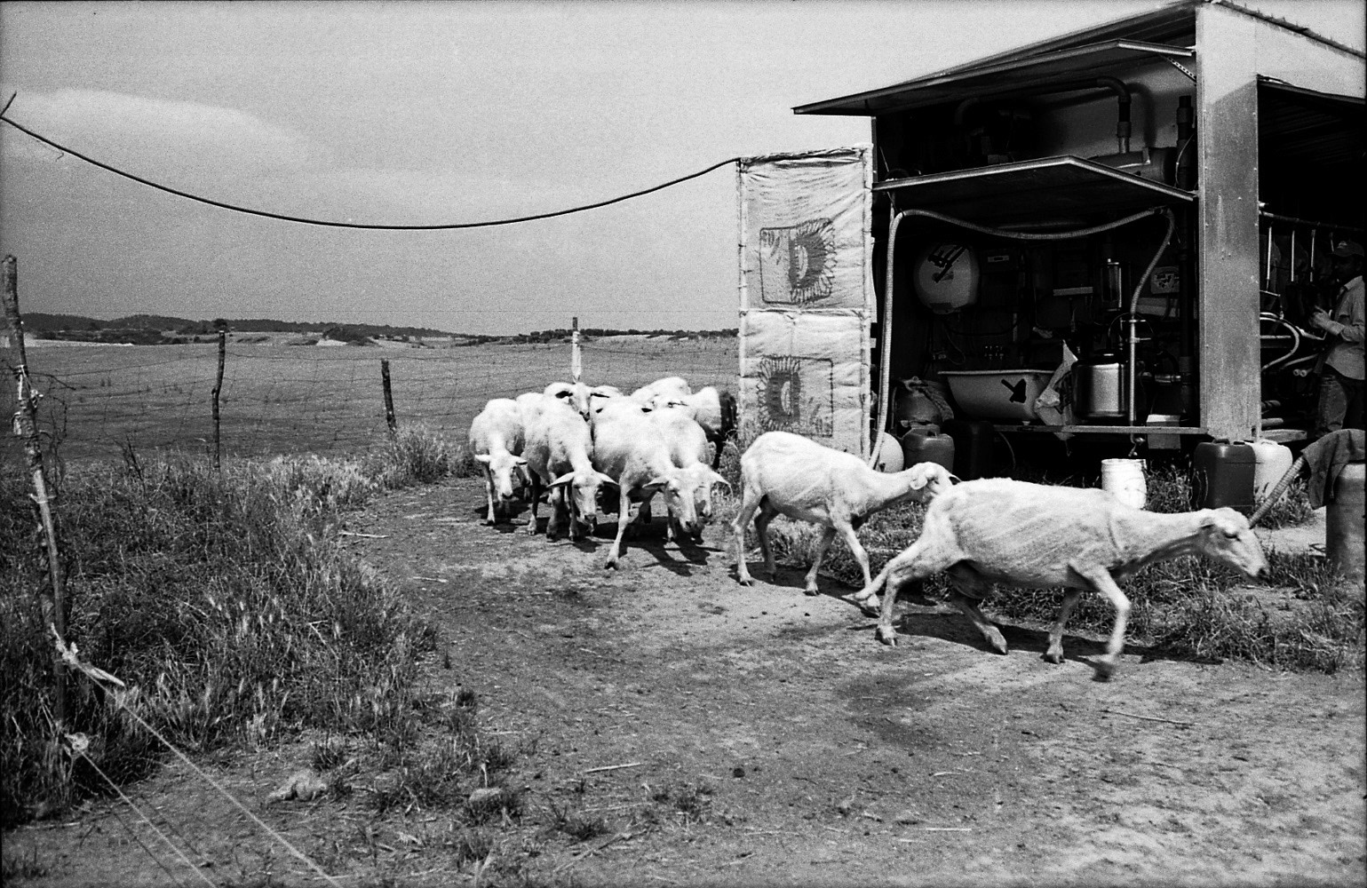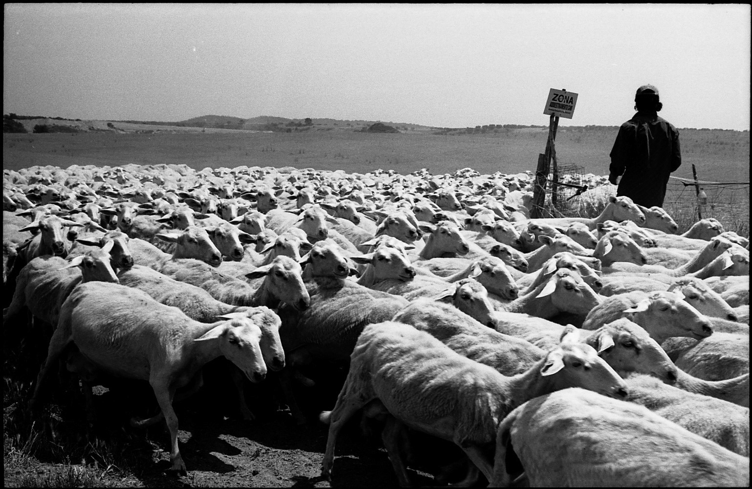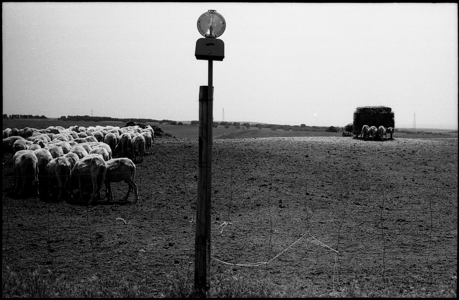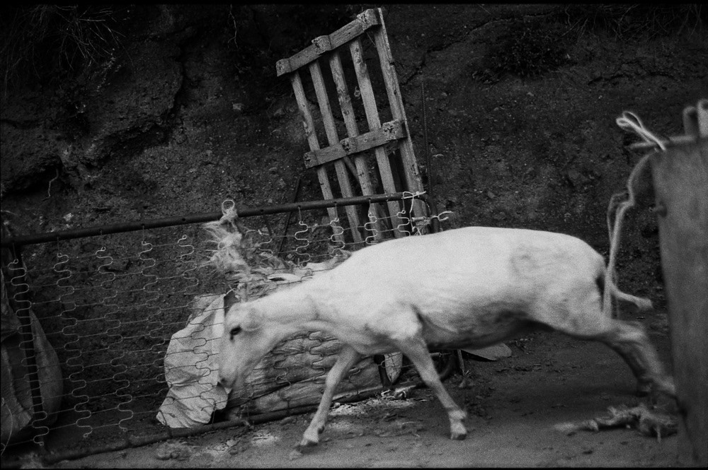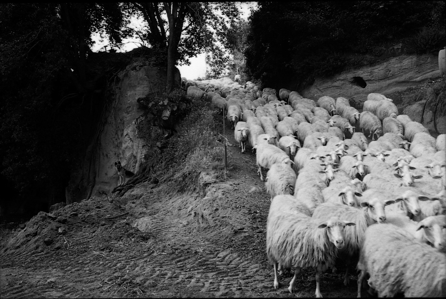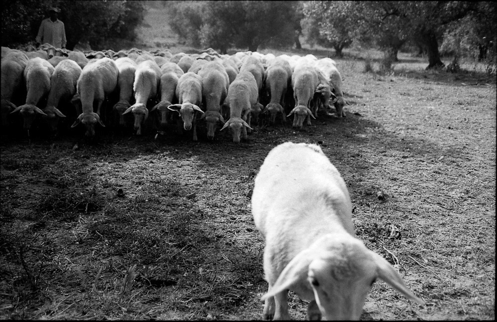 Dimitri Angelini returns to the timeless language of 35 mm black-and-white reportage, punctuated by subtle contemporary gestures: an aerial view of sheep being sheared, or the final frame divided by a pole topped with a torch. In the storied landscapes of Tuscia, he captures the quiet rhythms of pastoral life where tuff hills and rolling fields cradle centuries of tradition. Against the backdrop of flocks in motion, he captures intimate portraits of shepherds from far-flung places, intertwining a narrative of human presence and movement. This work is a meditation on the concept of the 'decisive moment', exploring the harmony between humans, animals and nature — a fragile yet enduring balance that connects us to the history of sheep farming and the broader narrative of human migration, and the eternal rhythm of life on the move.